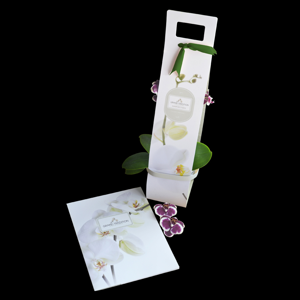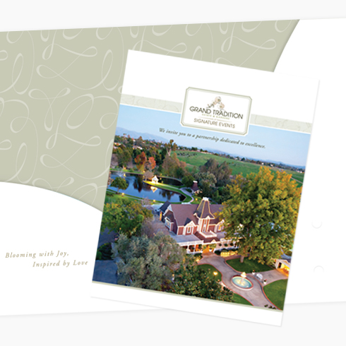 The scope of this project was to design custom packaging for an orchid plant, with matching folder and a brochure. It was used as a "leave-behind" for prospective high-end corporate customers reinforcing Grand Tradition's brand experience and extending their presence.